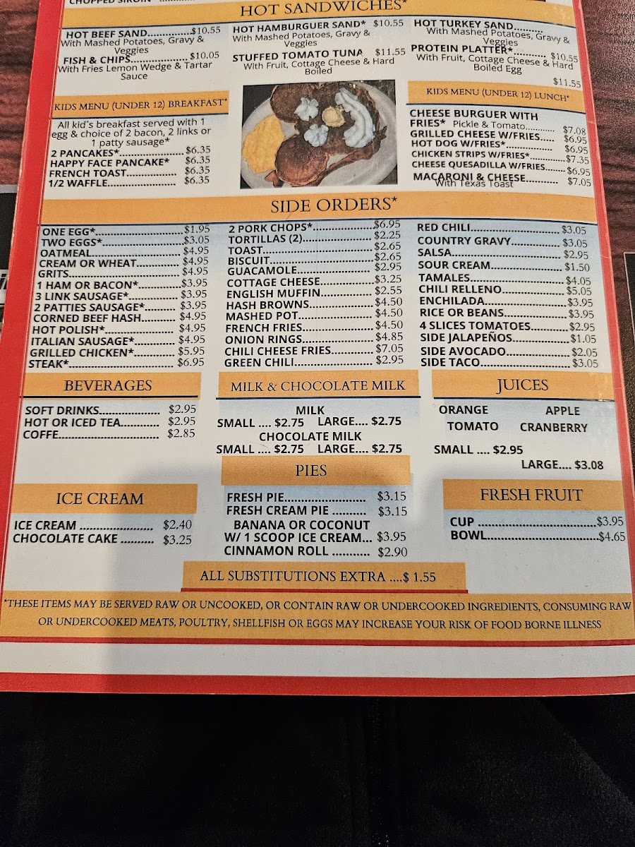 Overall, the menu supports casual dining experiences with straightforward, hearty options suitable for breakfast or lighter lunch meals. Visitors can expect familiar diner selections prepared for efficient service and easy ordering.