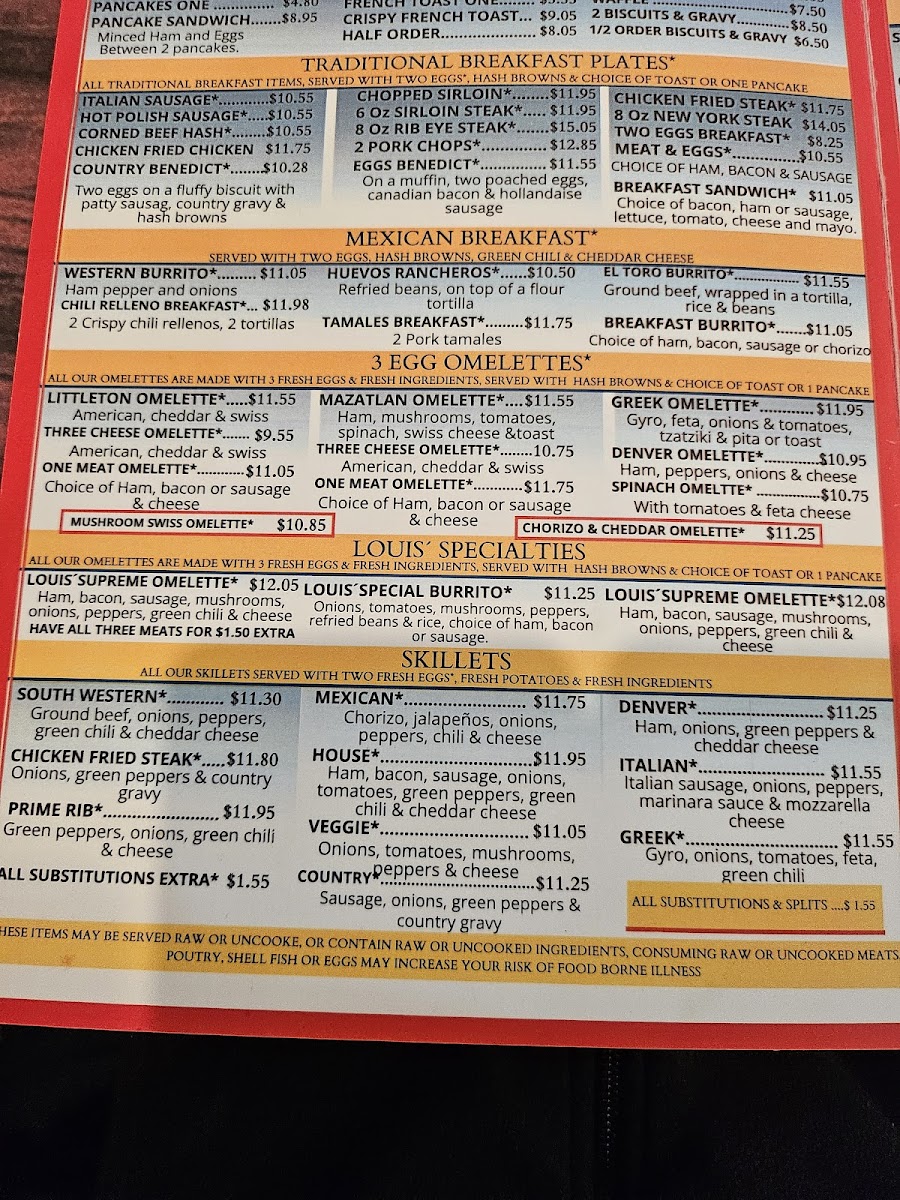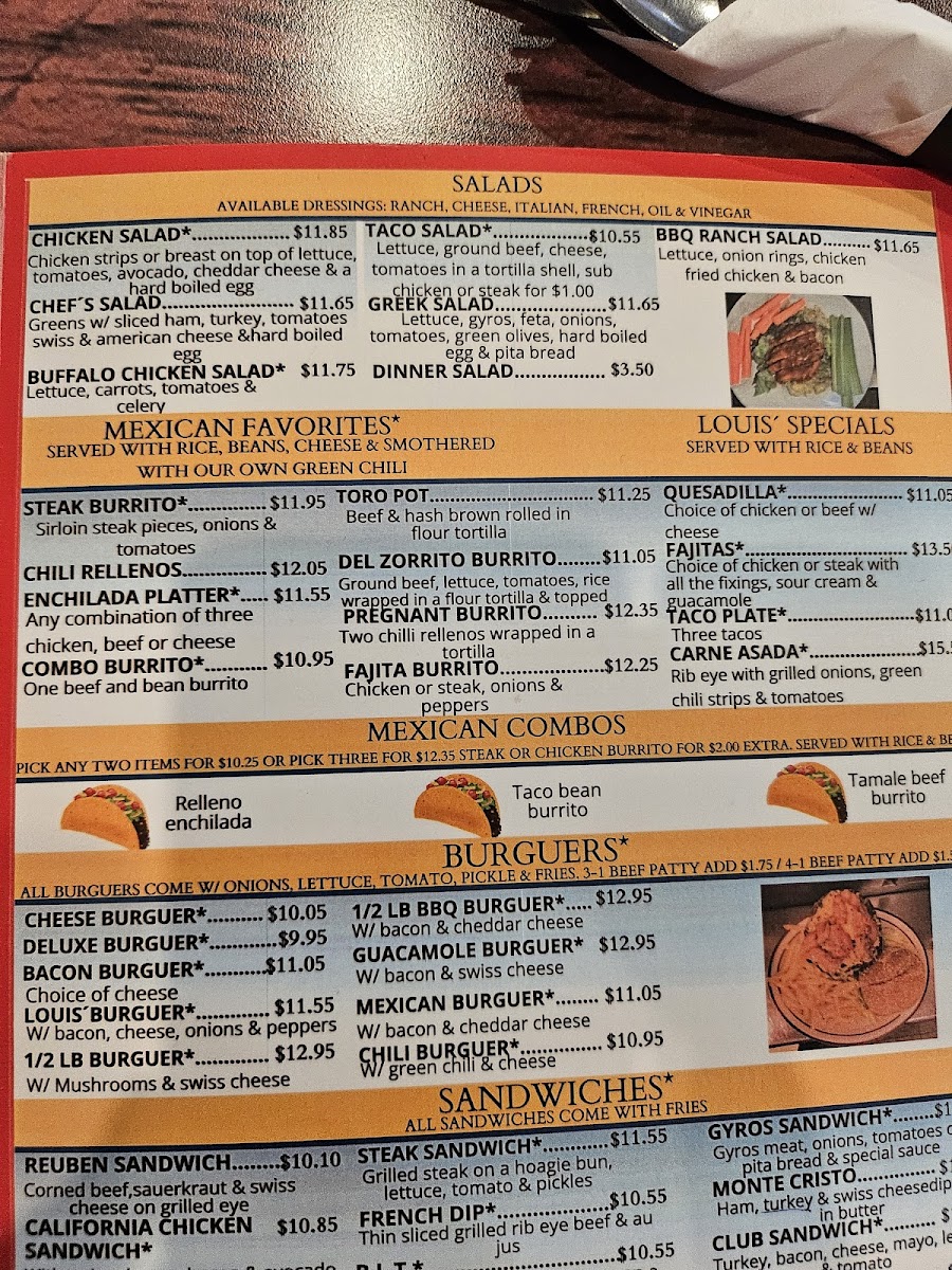 Louis' Diner Menu